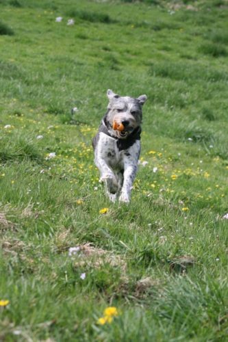 Jessie hat sich toll entwickelt. Sie kommt gut mit allen Hunden aus und fühlt sich offensichtlich wohl in ihrer Haut, hat auch etwas abgenommen, dafür Muskeln aufgebaut. Sie ist fit und hält jede Wanderung durch.